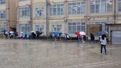 今日は、朝から雨がはげしく降るあいにくの天気となってしまいましたが、雨の場合でも子どもたちが楽しく活動できるプログラムが用意されています。活動の様子は、学校ホームページでも随時更新していきますので、どうぞご覧ください。
