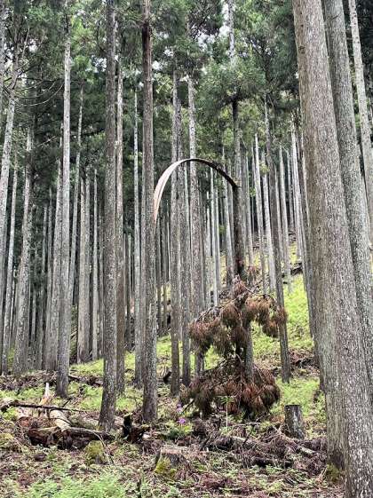 大きく裂けている木も見つけました。「ブリッジしてる木あんで!」「なんで割れたんかなあ?」「腐ったんちゃう?」「雷落ちたんやで、きっと!」などの子どもたちの会話から、子どもたちなりに考えを巡らせていることが感じられます。
