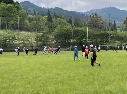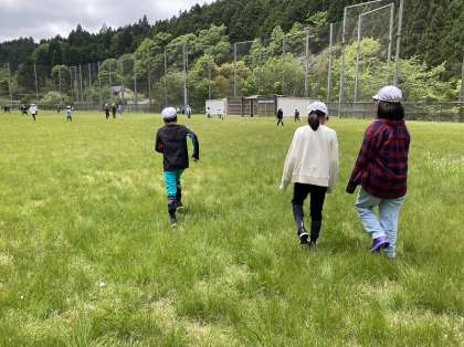 広いスポーツゾーンでみんな元気に「大おにごっこ」をしました。ふかふかの芝生が気持ちよさそうです。