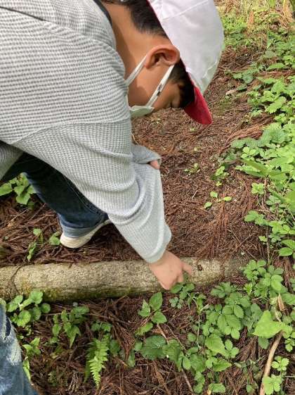 野鳥の森では、鳥の鳴き声に耳を澄ませたり、生き物を見つけたりして楽しんでいます。