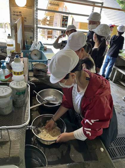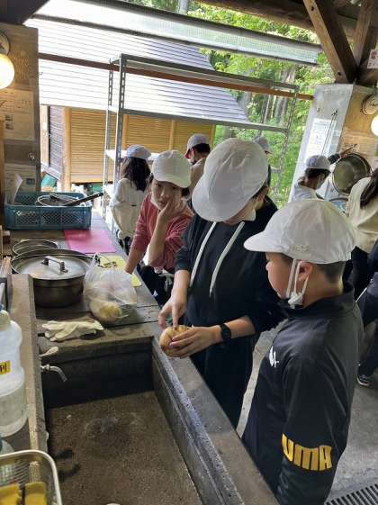野外炊事に関する説明や注意事項を確認したあと、それぞれの係に分かれて調理を始めました。今回は、「カレーライス」をつくります。