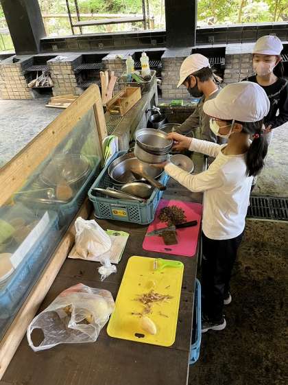 上手にカレーライスをつくることができるでしょうか?子どもたちは積極的に声を掛け合ってがんばっています。