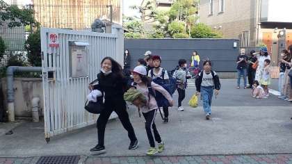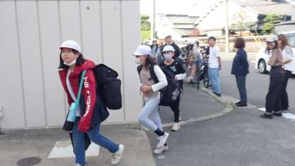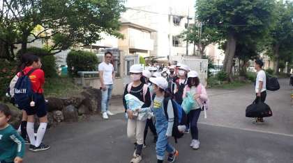 たくさんの保護者の方に迎えの中、子どもたちが学校に帰ってきました。やはり疲れた様子が見られましたが、お迎えの保護者の方を見つけると、手を振る姿も見られました。