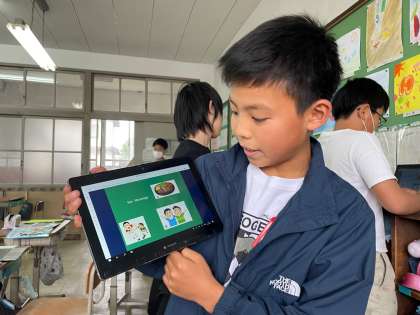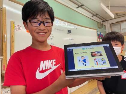 外国語の学習で、自己紹介をしました。出身地や得意なことなど、学習したことを生かして、伝え合うことができました!
