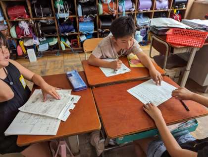 それを受け、梅津の町との似ているところと違うところについて考えました。同じ四条通りでも、建物の大きさや人の数の多さなど、いろいろな違いに気づいていました。