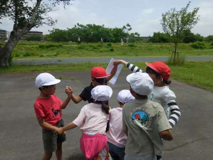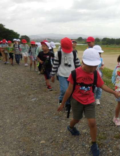 1年生と2年生で嵐山東公園へ春の遠足に行きました。嵐山東公園には、学校から歩いていきました。「あと、どれくらい?」「まだ着かないの?」と道中言っていた子どもたちでしたが、到着すると、そんな疲れなんて見せずに元気に走り回っていました。ラリーでは、クイズや協力ゲームなどに挑戦し、シールを集めました。