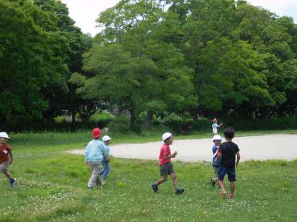 ラリーと自由行動の様子です。グループの人たちとじゃんけんしたり、決められた範囲で思いっきり走り回ったりしました。