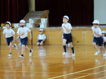 木曜日は、体力テストのシャトルランがありました。徐々に速くなっていくスピードに合わせて一生懸命走ります。最後には、残っている子にエールを送るとっても温かい姿も見られました。