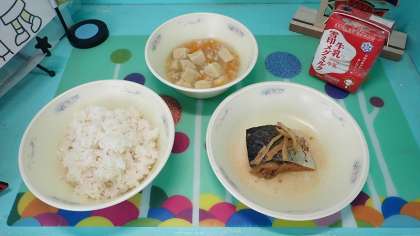 「さばのしょうが煮」は、さばの切り身をしょうがと一緒に甘辛く煮ています。さばの切り身に味がよくしみ込み、しょうががよいアクセントになっています。ごはんと一緒においしくいただきました。「高野どうふのそぼろ煮」は、甘く味付けした高野どうふが鶏ひき肉のそぼろあんとよく絡んで、とてもおいしくいただくことができました。