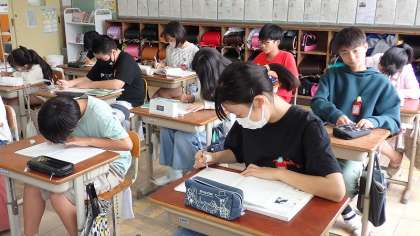 教室の様子を見に行くと、ちょうど学習を終えてふり返りを書いているところでした。