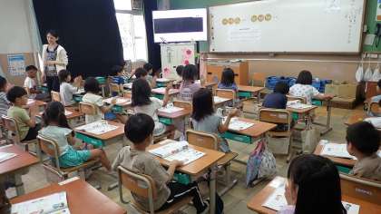 1年生は、音楽の「はくをかんじとろう」の学習をしています。