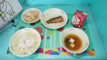 今日は、6月の「和献立」の日です。「さわらの塩こうじあげ」は、塩こうじに漬け込んださわらを油で揚げて作りました。塩こうじに漬け込むことで、身がやわらかくなり、白身のさわらのうまみも増します。からっと揚がった衣とやわらかいさわらの組み合わせがとてもよく、おいしくいただくことができました。