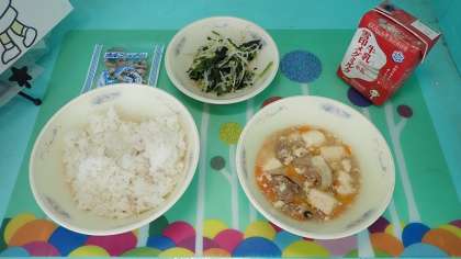 「五目どうふ」には、とうふのほか、豚肉、たまねぎ、にんじん、しいたけなどたくさんの具材が入っています。とろみがあり、ほんのりしょうがの効いただしが味をうまくまとめています。ごはんと一緒においしくいただきました。「ほうれん草ともやしのいためナムル」は、米酢のおかげでさっぱりとしており、口の中をすっきりさせてくれました。