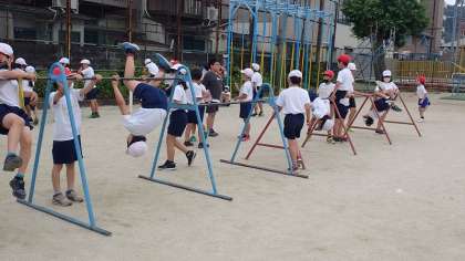 3年生は、体育の「てつぼう運動」の学習をしています。