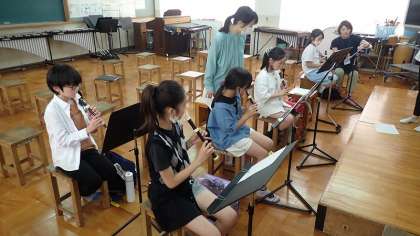 「陸上部」「音楽部」「バドミントン部」の3つの部活動では。子どもたちが楽しそうに活動していました。