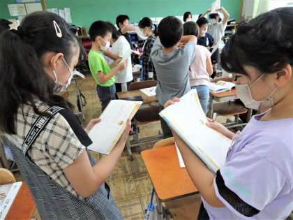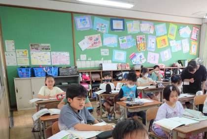 5月から、それぞれの担任が交代で道徳を教えている4年生の学年。今回は1組担任が『親切、思いやり』、2組担任が『勤労、公共の精神』、3組の担任が『感謝』の教材を使った授業を行っています。