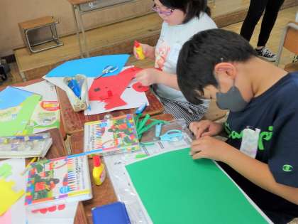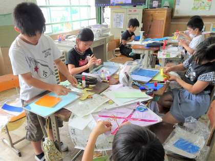 図画工作科『コロコロガーレ』の学習を始めました。初めの学習では、自分の作品のテーマを決めて、土台の作成から始めました。