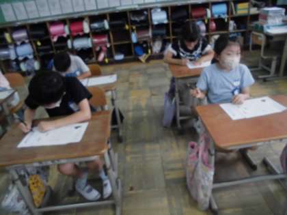 お手本を参考に、書き順や字形などに気を付けて1画1画丁寧に書くことができました。