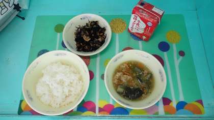 「夏野菜のあんかけごはん」は、万願寺とうがらし、なす、たまねぎ、にんじんなどの野菜を、鶏ひき肉の入ったあんかけでごはんと一緒にいただきます。万願寺とうがらしやなすなど、夏においしい野菜をたっぷり食べることができます。いつも以上にごはんもたくさん食べることができました。
