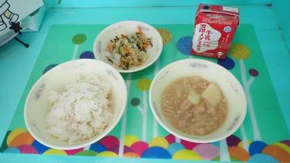「じゃがいものそぼろ煮」は、ほくほくのじゃがいもをしょうが風味の鶏そぼろと一緒にいただきました。ごはんによく合う献立で、ごはんと一緒に食べるとよりおいしくいただくことができました。「ごま酢煮」は、今日のような暑い日にはぴったりの献立です。口の中がさっぱりして、とても惜しくおただくことができました。