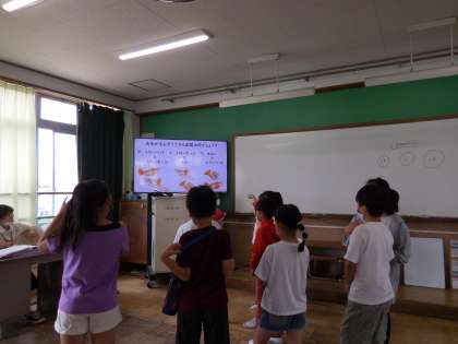 なかよしグループで、各教室に出題されているクイズに挑戦して回りました。むくのき学級の教室のクイズは、「むくのき学級で人気の給食のデザートはどれでしょう。」というものでした。事前にクラスで話し合っていたので、正解ができたのではないでしょうか…。