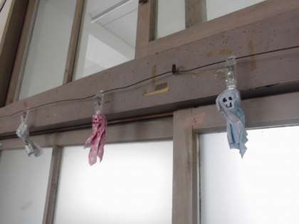 帰り際、ふと目線をあげると、教室の隅っこに3つのてるてる坊主が…みんなの思いが届いて、無事に晴れてくれるといいですね。