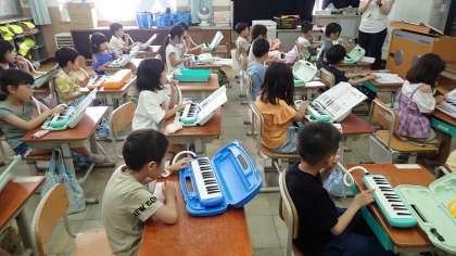 1年生は、音楽の鍵盤ハーモニカの学習をしています。