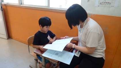 子どもたちは、担任の先生から1学期の通知票を渡してもらいました。