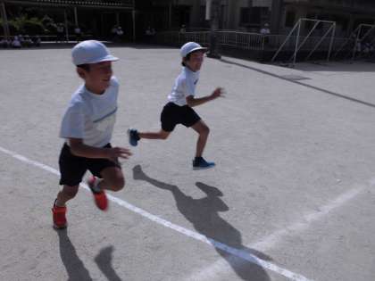 2学期が始まって最初の体育ということもあって、子どもたちはとても楽しんでいました。1学期のタイムから速くなったり遅くなったりと様々でしたが、少しずつ体を動かしていき、運動に親しんでほしいと思います。