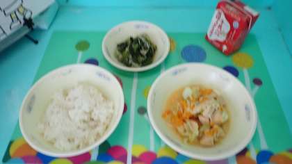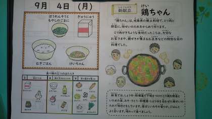 給食では、しょうゆ・料理酒で下味をつけた鶏肉を野菜と一緒に炒めた後、みそ・さとう・料理酒・しょうゆを合わせた特製のたれで味付けをしています。香ばしいみその香りとごはんがよく合う献立で、鶏肉のうまみと野菜の甘みを味わっておいしくいただきました。