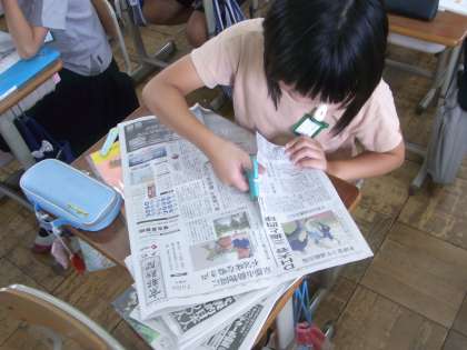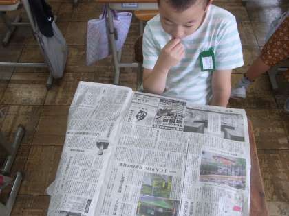 子どもたちは新聞の読み方を学習しています。今回の授業では自分が気になる新聞記事を一つ選び、その記事を自分なりに読み取りました。この学習をきっかけに新聞に興味をもって日常生活につなげてほしいと思います。