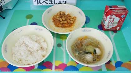 「ドライカレー」とは、汁気のないカレーのことです。今日の給食では、大豆・まぐろフレーク・たまねぎ・にんじんを使って作りました。おいしくなるように、大豆のゆで汁も使っています。ごはんに混ぜるとちょうどよい具合の味で、いつも以上にもりもり食べることができました。「はるさめスープ」は、春雨のつるんとした食感を楽しんでおいしくいただきました。