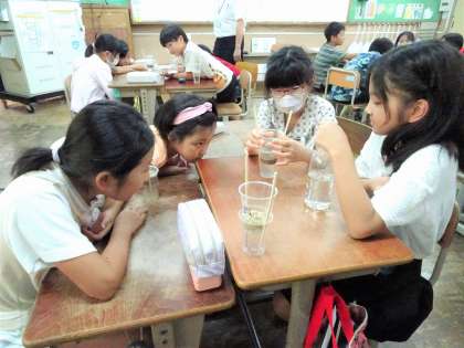と、紙コップに顔を近づけて、楽しそうに実験結果を確かめていました。