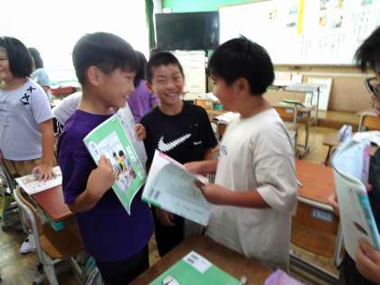 1学期と同様に、今週の道徳の学習から担当交代制で授業をしています。今回は、1組に3組担任、2組に1組担任、3組に2組担任が行って、それぞれ担当の教材で授業をしました。どのクラスも一生懸命先生の話を聞いて頑張っている様子が見られました。