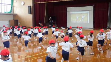 音楽に合わせて、みんな一生懸命ダンスの練習をしています。先生や動画のお手本を見ながら、体全体で振り付けを表現しています。練習はまだまだこれからが本番ですが、みんなとてもよい表情です!