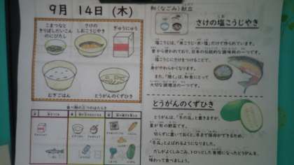 今日は、9月の「和献立」の日でした。「さけの塩こうじ焼き」は、さけと塩こうじを交互に重ねて漬け込んでから、スチームコンベクションオーブンで焼いて調理しました。さけを塩こうじにつけるとやわらかくなり、あま味やうま味をより一層感じられるようになります。ごはんと一緒に食べるのにぴったりの献立でした。