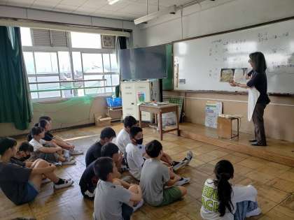 5年2組の教室に、図書ボランティアの「うめのこ」さんが読み語りに来てくださいました。