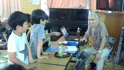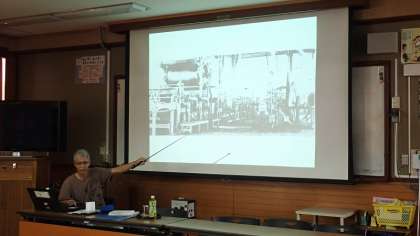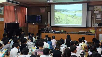 途中の休憩の時にも、先生の所に行って質問をしている子もいました。今日のお話を聞いて、自分たちの住む梅津について、より関心を深めているようでした。