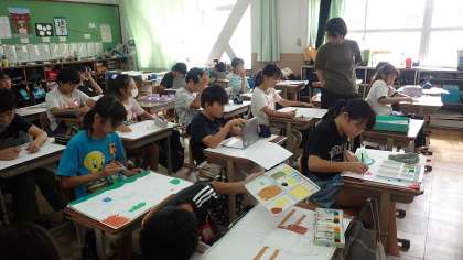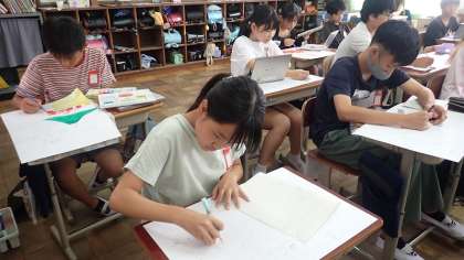 6年生は、図工の「お話の絵」の作品づくりに取り組んでいます。