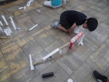 生活科の学習では、夏休み前からおうちで出た廃材を集めてそれを使って遊ぶことにしました。