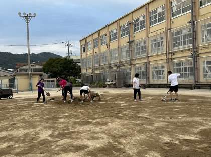 運総会に向けて、運動場に新しい砂を補充しました。放課後、教職員でへこみがあったところや、砂が少なくなっていたところに砂を入れました。少しでもよい状態で運動会を迎えられるようにしていきたいと思います。