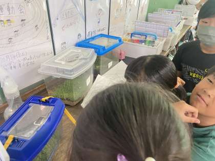 クラスの友達が捕まえた、カマキリが2匹、教室にやってきました。子どもたちは、休み時間のたびにカマキリの様子を見に行っています。昆虫について詳しい友達から、カマキリのエサや虫かごの中の環境の整え方まで教えてもらいながら育てています。