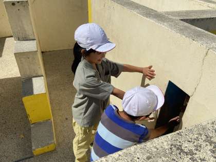 迷路の中は、子どもたちがワクワクするようなところがたくさん!細い穴から通り抜けたり、階段を上ったり下りたり・・・迷路の中をグルグルと夢中になって遊んでいました。
