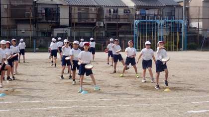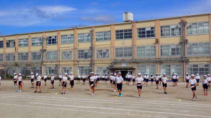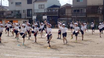 2週間後に迫った運動会に向けて、順調に練習が進んでいます。運動場に出て、本番と同じ場所で演技をしました。4年生全員のパーランクの音も揃ってきています。みんな、大きな動きで踊っていました。