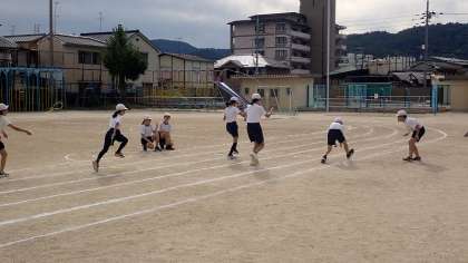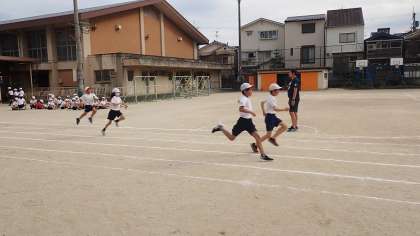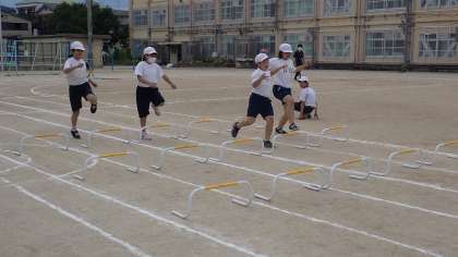 今日は、短距離走とアイデア走の練習をしました。短距離走とアイデア走は、子どもたちの選択種目です。スタートのタイミングや、アイデア走の走り方などを確かめました。