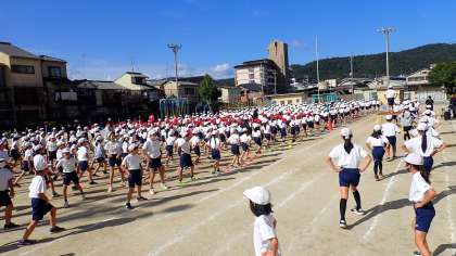 開・閉会式の練習とともに、準備運動になる全校ダンスの練習も行いました。それぞれのクラスでも練習していたので、みんな気持ちよく踊ることができました。