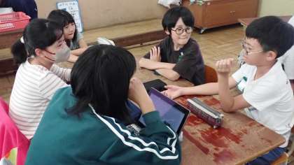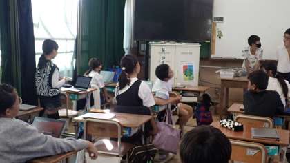 今日は、梅津小学校の子どもたちのよいところや改善が必要なところをもとに、よりよい梅津小学校のために必要だと思う「会社」について考えています。会社設立のねらいや、活動内容などについて話し合い、発表していました。