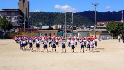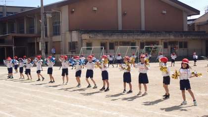 本番がいよいよ目の前に近づいてきました。両手にポンポンをもって、本番さながらに練習をしています。大きい動きやかわいい仕草、にこにこした表情が1年生らしくとても素敵です。土曜日の運動会本番が楽しみです!