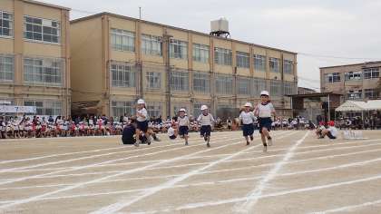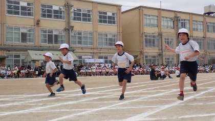 小学生になり、広い運動場を思いっきり走るようになりました。走り方もだんだん小学生らしく、力強くなってきました。はじめての運動会で、50m先のゴールをめざしてまっしぐらに走りました。