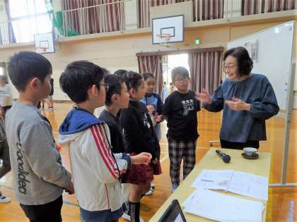 普段の生活のことから、日常で使っている器具など、子どもたちにとって初めて知ることがたくさん!とっても興味深くメモを取りながら聞いていました。